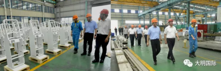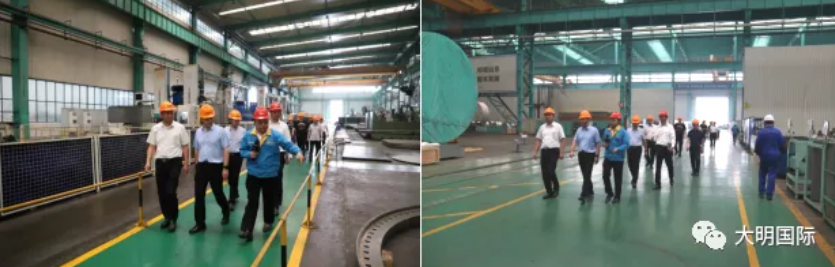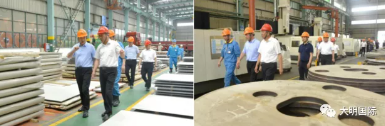 5月28日,河鋼邯鋼副總經理李耀強、技術中心主任陳子剛、邯寶熱軋廠黨委書記潘竟忠、品質管理部副部長白碩、銷售分公司副處長李建國等一行來訪大明,大明國際總裁蔣長虹、集團總工程師唐中海、靖江加工中心總經理陳寧、集團碳鋼事業部總經理鄧梁峰、副總經理楊順、總經理助理董云龍等熱情接待。李耀強副總經理一行先后參觀了大明集團總部、大明靖江加工中心和大明重工,充分了解了大明的設備工藝、加工能力等情況。